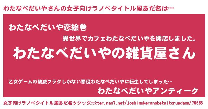 | 男性向けラノベタイトル風あだ名 | 『やはりわたなべだいやの青春ラブコメはまちがっている 』 |