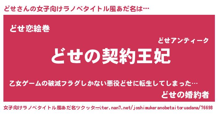 | 男性向けラノベタイトル風あだ名 | 『どせという概念が存在しない退屈な世界 』 |