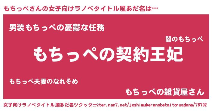 | 男性向けラノベタイトル風あだ名 | 『もちっぺという概念が存在しない退屈な世界 』 |