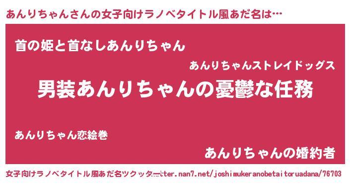 | 男性向けラノベタイトル風あだ名 | 『うちのあんりちゃんが世界を掌握している!』 |