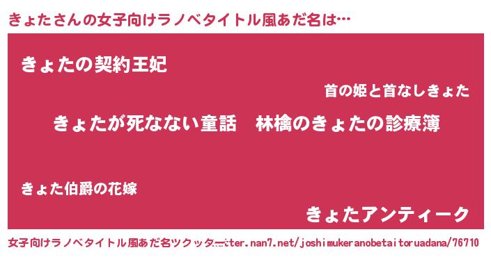 | ヘコむあだ名 | 『きょた(小並感)』『豆乳』『きょを』 |