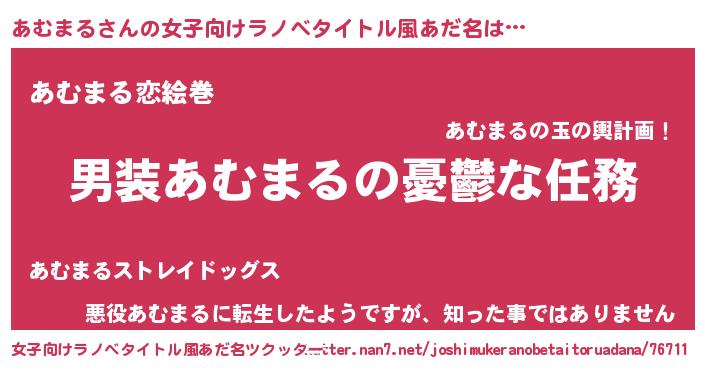 | 男性向けラノベタイトル風あだ名 | 『冴えないあむまるの育てかた』 |