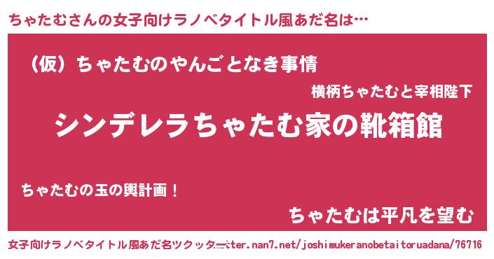 | 胡散臭い通販商品みたいなあだ名 | 『モテモテ間違いなし霊験あらたかなお札…その名も「ちゃたむ」』 |