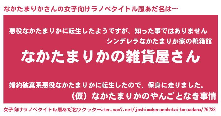 | 男性向けラノベタイトル風あだ名 | 『やはりなかたまりかの青春ラブコメはまちがっている 』 |