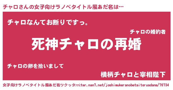 | 男性向けラノベタイトル風あだ名 | 『ノーゲーム・ノーチャロ』 |