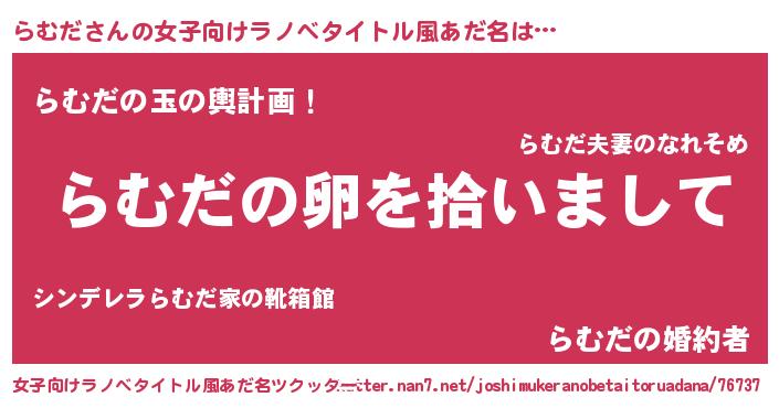 | 男性向けラノベタイトル風あだ名 | 『ダンジョンにらむだを求めるのは間違っているだろうか』 |
