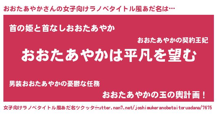| 男性向けラノベタイトル風あだ名 | 『ダンジョンにおおたあやかを求めるのは間違っているだろうか』 |