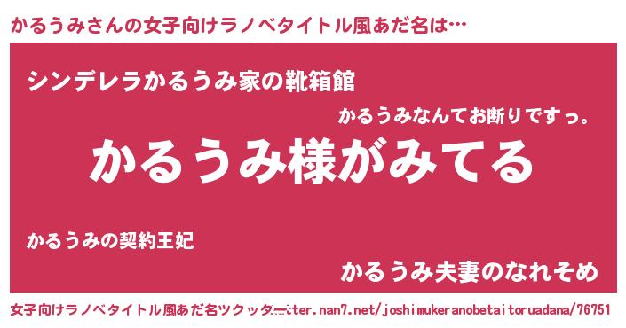 | 男性向けラノベタイトル風あだ名 | 『かるうみの嫁は女の子じゃないと思った?』 |