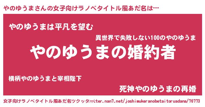 | ファンタジー風あだ名 | 『エターナルヤノユウマー』『ヤノフェル』 |