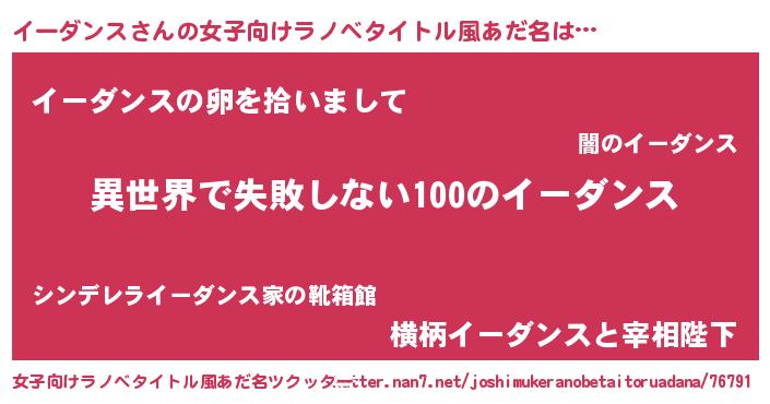 | 男性向けラノベタイトル風あだ名 | 『イーダンスという概念が存在しない退屈な世界 』 |