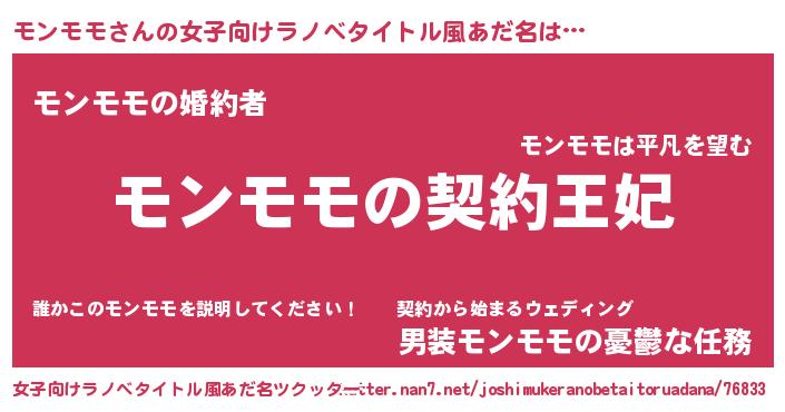 | 男性向けラノベタイトル風あだ名 | 『モンモモという概念が存在しない退屈な世界 』 |