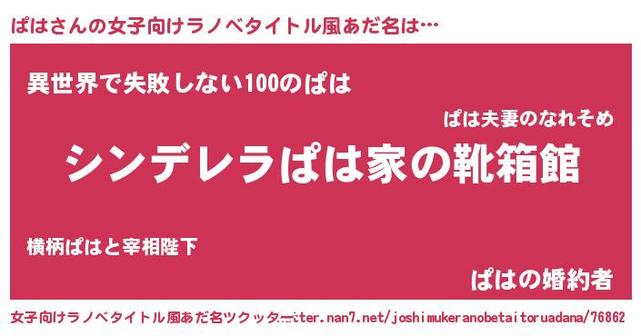 | 胡散臭い通販商品みたいなあだ名 | 『絶対に幸福をもたらす水素水…その名も「ぱは」』 |