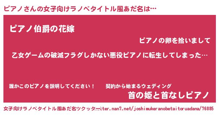 | 男性向けラノベタイトル風あだ名 | 『この素晴らしい世界にピアノを!』 |