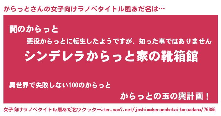 | ヘコむあだ名 | 『からっと(遠い目)』『からっぺ』 |