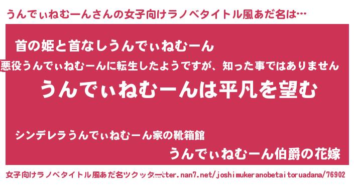 男性向けラノベタイトル風あだ名 | 『ダンジョンにうんでぃねむーんを求めるのは間違っているだろうか』 |