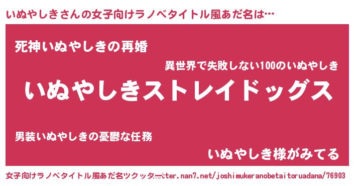 | 意味不明あだ名 | 『自称いぬやしき』『永久保存いぬやしき』 |