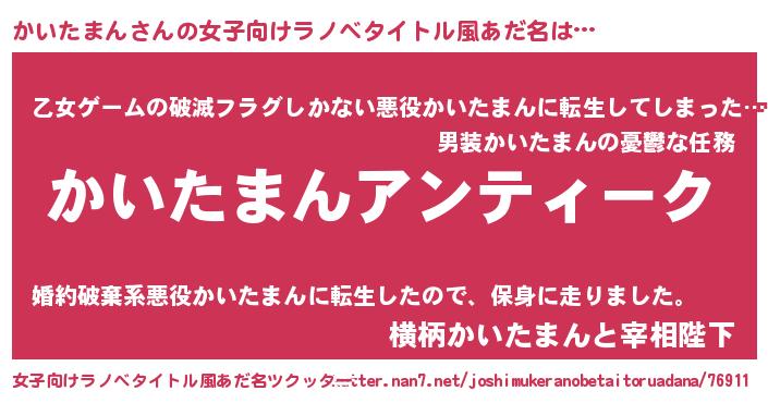 | 意味不明あだ名 | 『自称かいたまん』 |