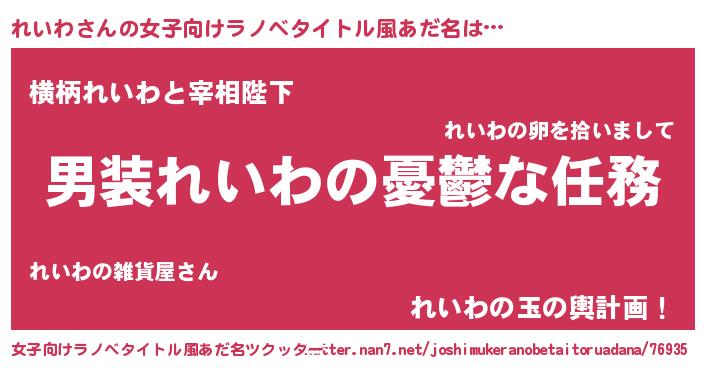 | ヒーロー風カッコイイあだ名 | 『天弓騎士レイ』『ウルトラれいわマン』 |