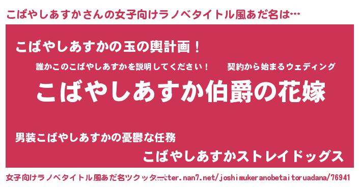 | 肩書あだ名 | 『こばやしあすか国家主席』 |