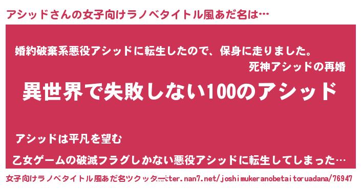 | 男性向けラノベタイトル風あだ名 | 『アシッドという概念が存在しない退屈な世界 』 |