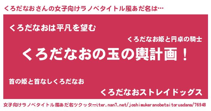 | 男性向けラノベタイトル風あだ名 | 『転生したらくろだなおだった件』 |