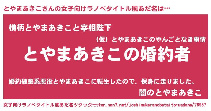 | ファンタジー風あだ名 | 『エターナルトヤマアキコー』 |