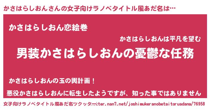 | 男性向けラノベタイトル風あだ名 | 『冴えないかさはらしおんの育てかた』 |
