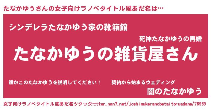 | ファンタジー風あだ名 | 『エターナルタナカユウー』『ゼタナトゥ』 |