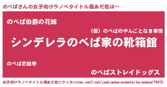 | 男性向けラノベタイトル風あだ名 | 『緋弾のノベバ』『のべばの憂鬱』 |