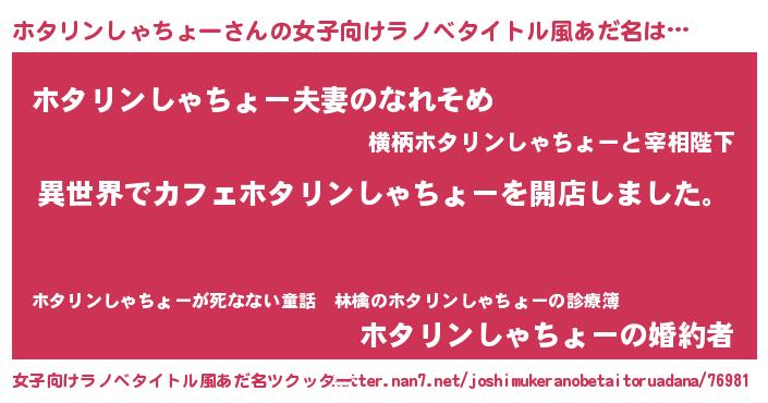 | 胡散臭い通販商品みたいなあだ名 | 『前代未聞の水素水…その名も「ホタリンしゃちょー」』 |