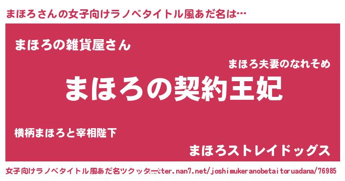 | 男性向けラノベタイトル風あだ名 | 『まほろという概念が存在しない退屈な世界 』 |