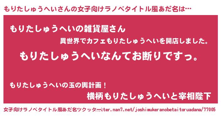 | 意味不明あだ名 | 『自称もりたしゅうへい』 |