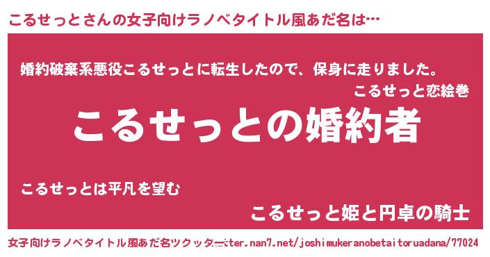 | 胡散臭い通販商品みたいなあだ名 | 『運命の人と巡り会える高級そうな絵画…その名も「こるせっと」』 |