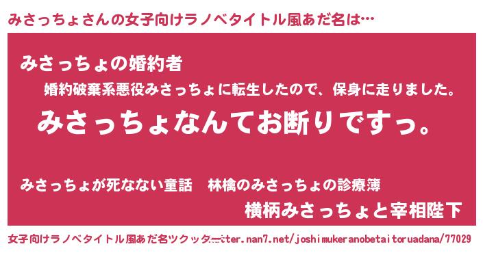 | 胡散臭い通販商品みたいなあだ名 | 『ガンによく効く高麗人参…その名も「みさっちょ」』 |