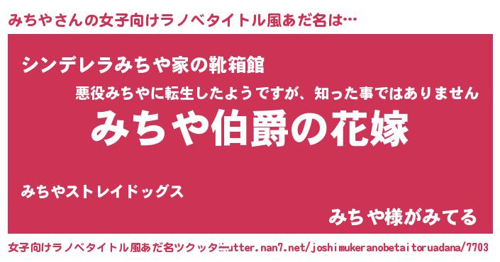 | 意味不明あだ名 | 『みちやフォーエバー』『自称みちや』 |