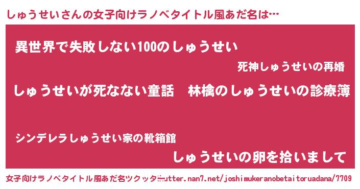 | ヘコむあだ名 | 『しゅうせい(遠い目)』『しゅぷりん』 |