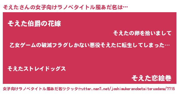 | 意味不明あだ名 | 『住所不定無職そえた(86歳)』『自称そえた』 |