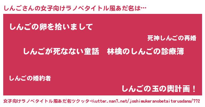 | 意味不明あだ名 | 『住所不定無職しんご(89歳)』 |