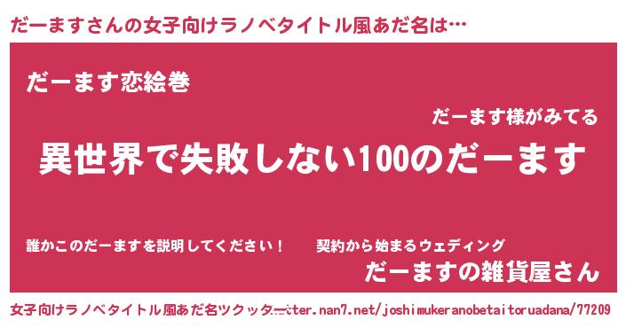 | 男性向けラノベタイトル風あだ名 | 『だーますという概念が存在しない退屈な世界 』 |