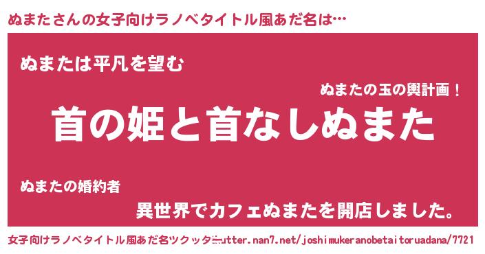 | 意味不明あだ名 | 『とにかく怪しいぬまた』『自称ぬまた』 |