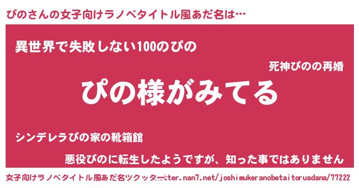 | 男性向けラノベタイトル風あだ名 | 『ぴのの嫁は女の子じゃないと思った?』 |