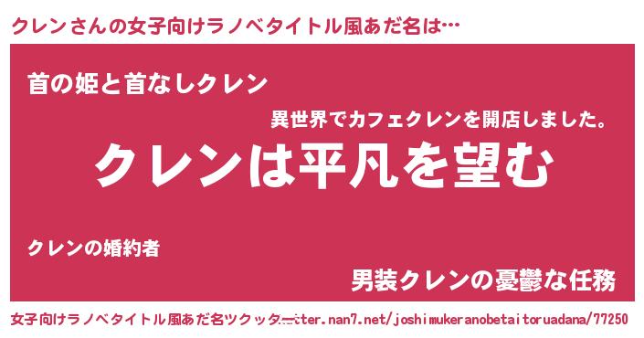 | 男性向けラノベタイトル風あだ名 | 『ダンジョンにクレンを求めるのは間違っているだろうか』 |