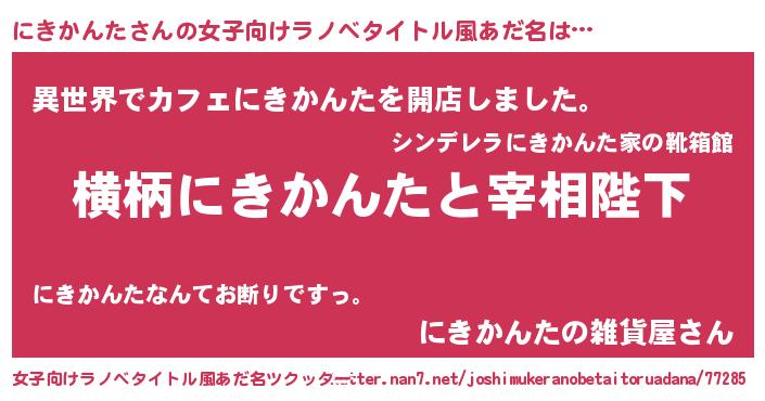 | 男性向けラノベタイトル風あだ名 | 『にきかんたに滅ぼされるだけの簡単なお仕事です』 |