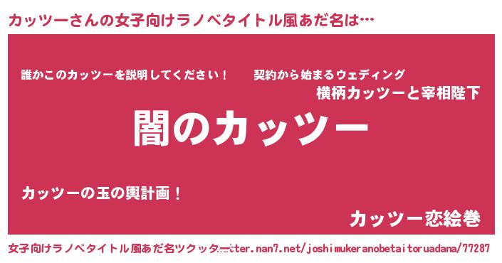 | ヒーロー風カッコイイあだ名 | 『サイバー戦士カッツー』『仮面カッダー』 |