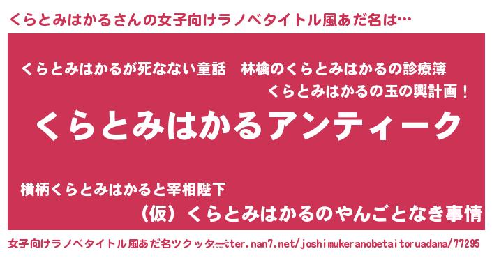 | 意味不明あだ名 | 『自称くらとみはかる』 |