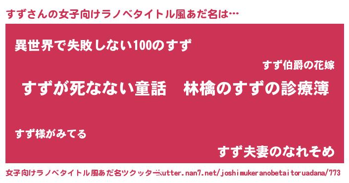 | 男性向けラノベタイトル風あだ名 | 『魔弾の王とすず』 |
