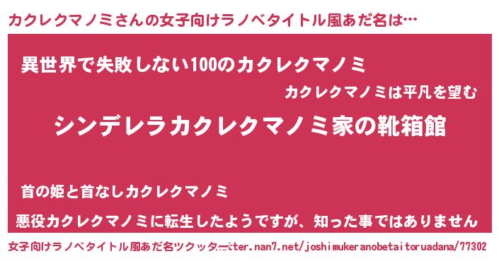 | 男性向けラノベタイトル風あだ名 | 『冴えないカクレクマノミの育てかた』 |