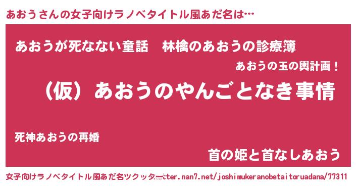 | ファンタジー風あだ名 | 『アオフェル』『ヴァルアオーナ』 |