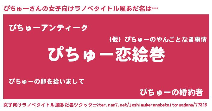 | ヒーロー風カッコイイあだ名 | 『愛の使者ぴちゅー』『最強戦士ピチュー』 |