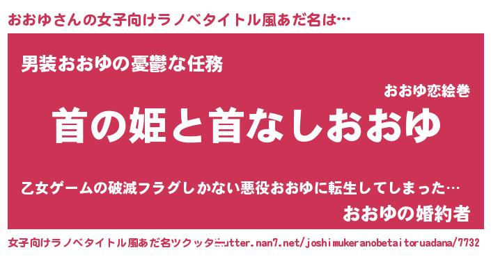 | 男性向けラノベタイトル風あだ名 | 『はたらくおおゆさま!』 |